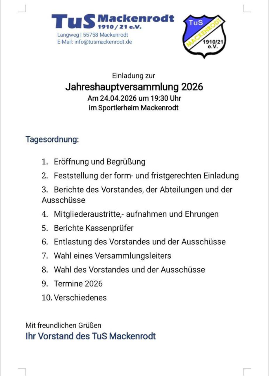 Am Mittwoch, dem 25.03.2026, fand um 19:00 Uhr im Bürgerhaus der OG Mackenrodt, Hauptstraße 21, 55758 Mackenrodt eine öffentliche/nicht öffentliche Sitzung des Ortsgemeinderates Mackenrodt statt.
